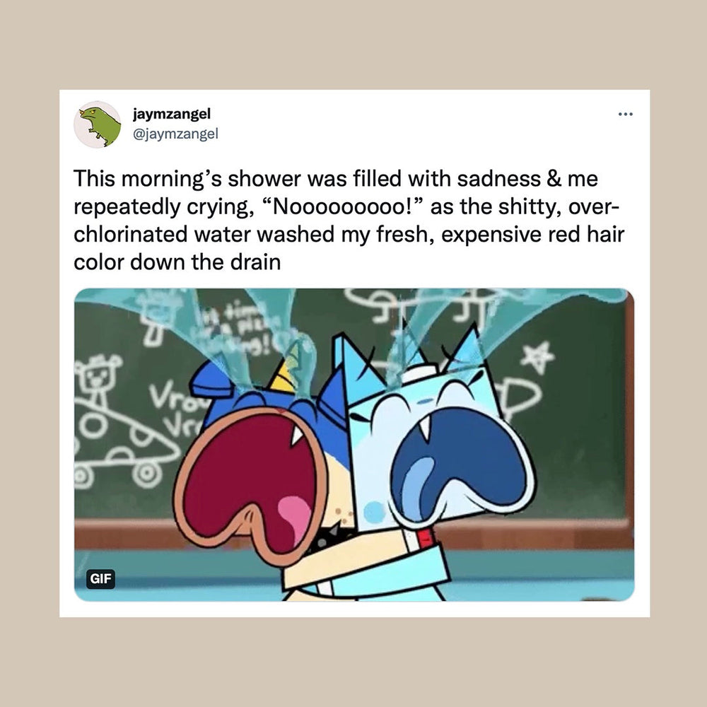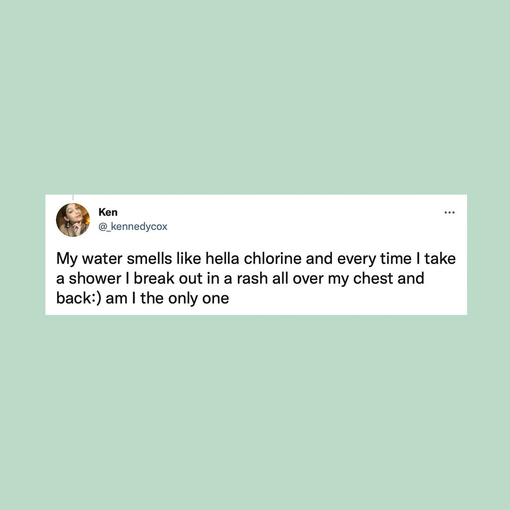 It’s as simple as this. Chlorine is an inflammatory chemical that is bad for your skin and hair as it strips away our natural oils… The chlorine also gets released as a gas when the water gets hot (as it does in a shower). We absorb all of this not only through our skin, but also through our lungs.